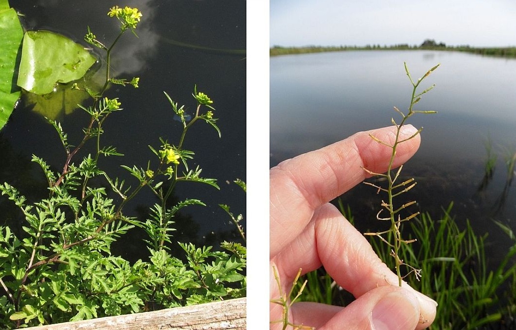 Het verschil in beworteling kun je mooi zien in de tekeningen van Rothmaler – Flora van Nederland, Afbeeldingen van vaatplanten. Uitzonderingen zijn er natuurlijk ook. Zo zag ik een alleenstaande, forse Akkerkers op het hout langs de waterkant. Vanwege de standplaats zou je kunnen denken aan Gele waterkers (Rorippa amphibia), maar die heeft heel ander blad.