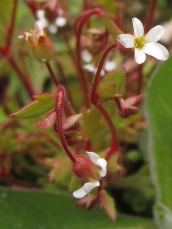 Een etagère waarop gesuikerde gebakjes liggen te pronken bij een high tea, dat is waar Hoenderbeet me aan doet denken. De paren schutblaadjes vormen schoteltjes waarop de roze knoppen en bloemen aantrekkelijk worden gepresenteerd. Die ‘schoteltjes’ zijn het opvallendste verschil